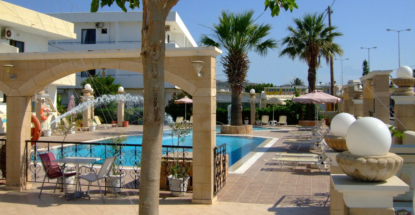 A 5-minute walk from Faliraki Beach, Antonios Hotel offers rooms and self-catered studios with private balcony. Facilities include a seasonal pool and children’s pool, complete with pool-side snack bar, sun beds and umbrellas. A satellite TV, kettle and fridge are included in each of the air-conditioned rooms and studios. The later also include a kitchenette for the preparation of your meals. All units have private bathrooms with shower and hairdryer.